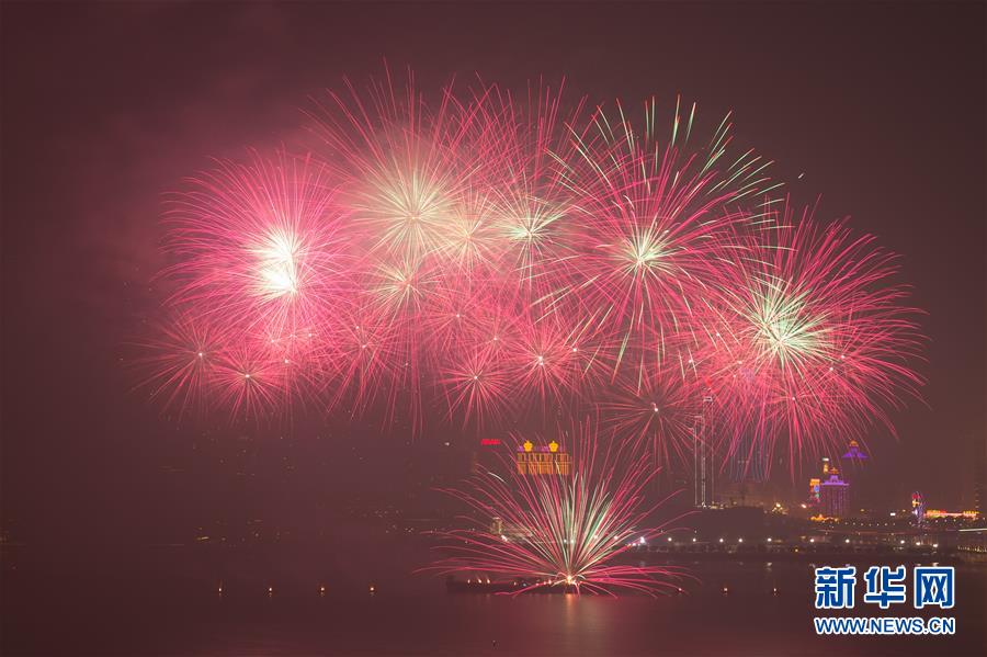12月22日,煙花在澳門上空綻放。當晚,澳門與珠海首次聯(lián)合舉行煙花匯演,慶祝澳門回歸祖國20周年。新華社記者張金加攝