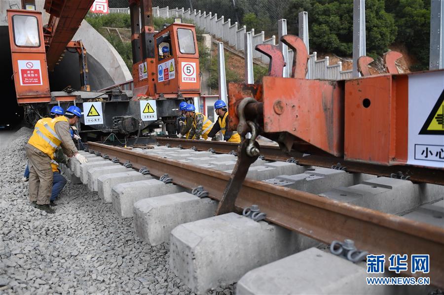 12月22日,中鐵二十四局工作人員在平潭海峽公鐵大橋鋪軌施工現(xiàn)場(chǎng)進(jìn)行鋪軌作業(yè)。新華社記者林善傳攝
