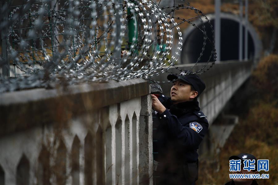 12月18日,常曉龍(前)和輔警在巡線。新華社記者劉軍喜攝