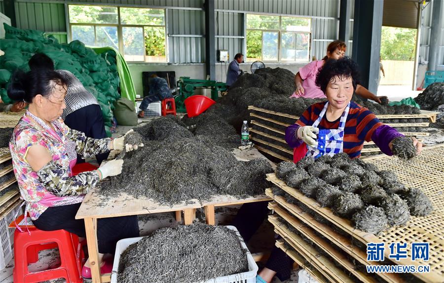 8月22日,在福安市溪邳村的海產(chǎn)品加工廠,村民對(duì)海帶進(jìn)行粗加工。新華社記者林善傳攝