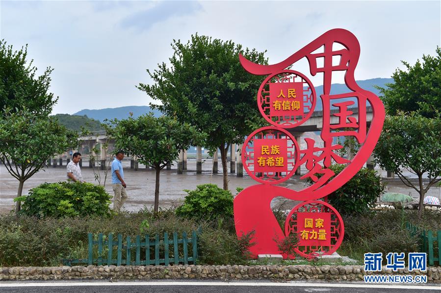 8月22日,福安市溪邳村村民從該村的宣傳欄前走過(guò)。新華社記者林善傳攝