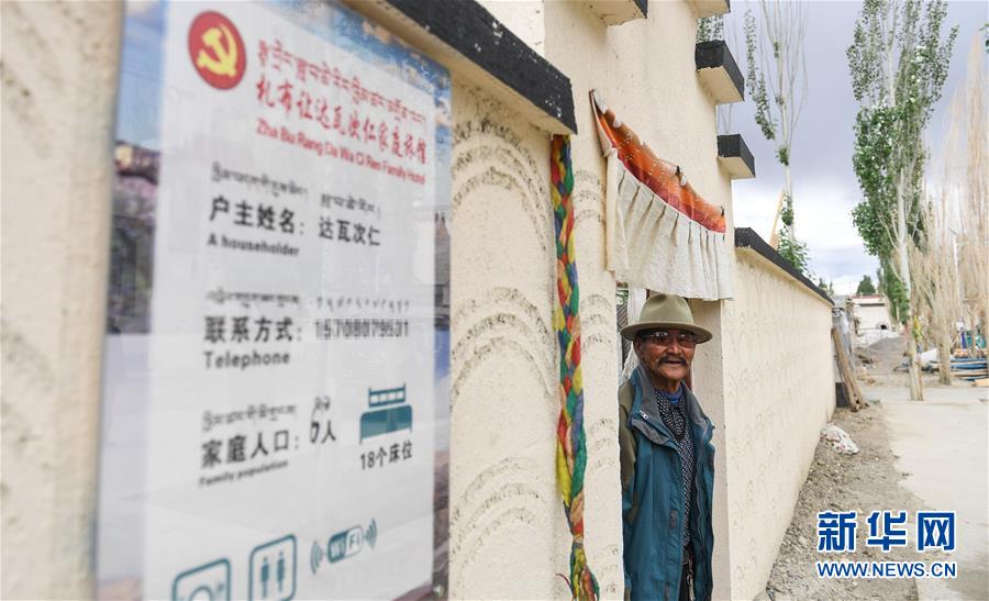 76歲的達(dá)瓦次仁在位于西藏阿里地區(qū)札達(dá)縣托林鎮(zhèn)札布讓村的家門(mén)口(7月30日攝)。新華社記者晉美多吉攝