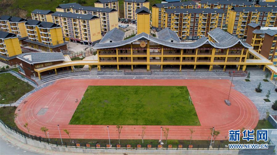 建于怒江邊的大興地鎮(zhèn)維拉壩“珠海小區(qū)”內(nèi)的學(xué)校和住房已初現(xiàn)規(guī)模(6月24日無人機(jī)拍攝)。新華社記者胡超攝