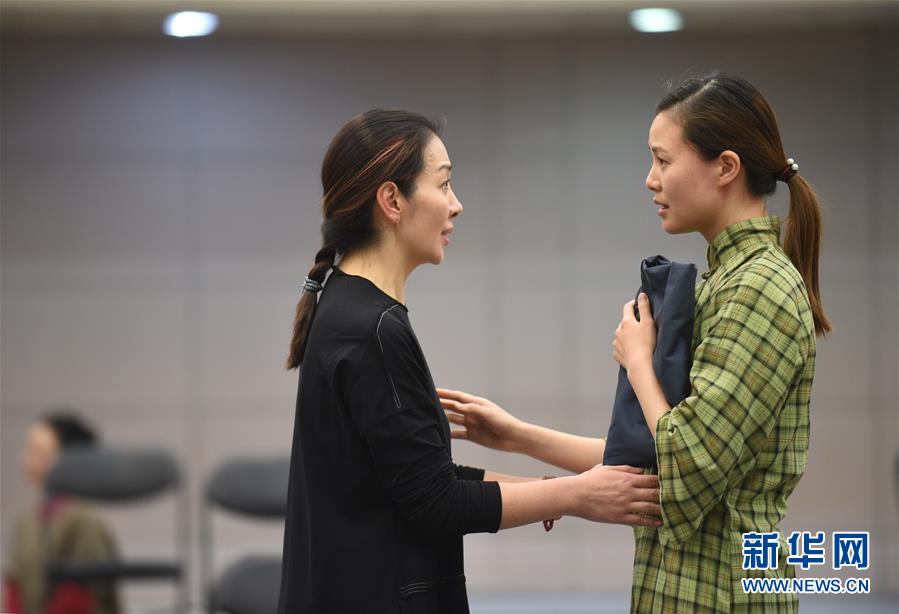 12月26日,在話劇《二月》中飾演陶嵐的演員盧芳(左)和飾演文嫂的演員黃薇在排練。 新華社記者 羅曉光 攝