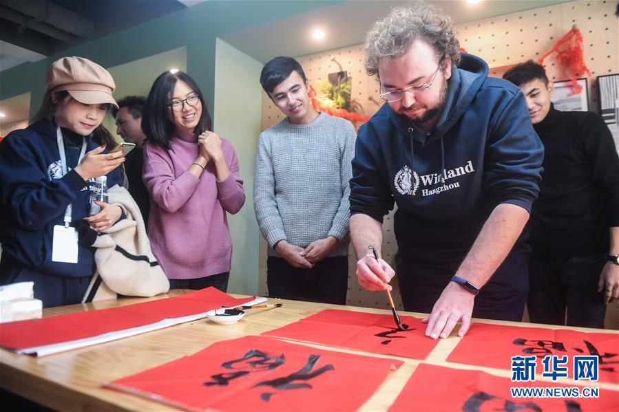 當日,浙江省杭州市拱墅區(qū)上塘街道的瓜山新苑社區(qū)舉辦居民入住后的首個迎新年活動,社區(qū)內(nèi)的中外青年一起體驗寫春聯(lián)、貼福字、包餃子等中國傳統(tǒng)習俗,在熱鬧喜慶的氣氛中迎接即將到來的新年。