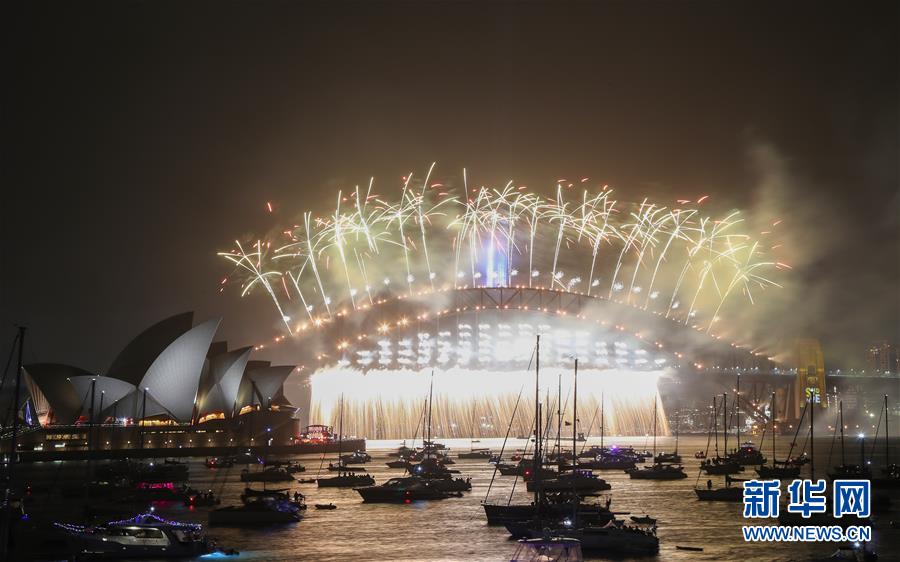 當(dāng)?shù)貢r(shí)間2020年1月1日,澳大利亞悉尼歌劇院和海港大橋畔燃放煙花,慶祝2020年的到來。新華社記者白雪飛攝