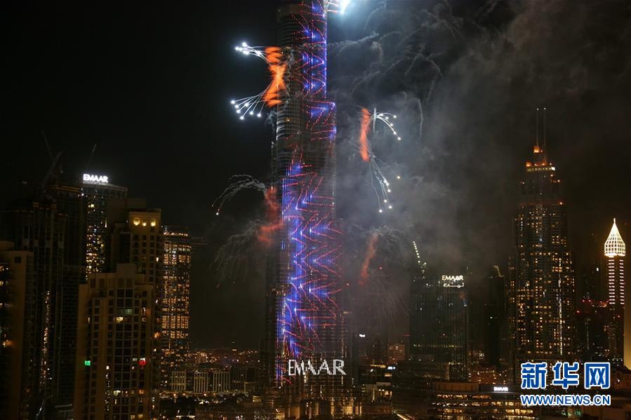 這是2020年1月1日拍攝的阿聯(lián)酋迪拜哈利法塔跨年煙火表演。新華社記者蘇小坡攝