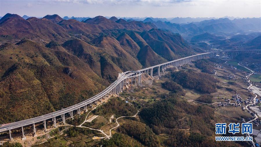 這是中冶集團承建的紫望高速火花特大橋(無人機照片,1月1日攝)。新華社記者陶亮攝