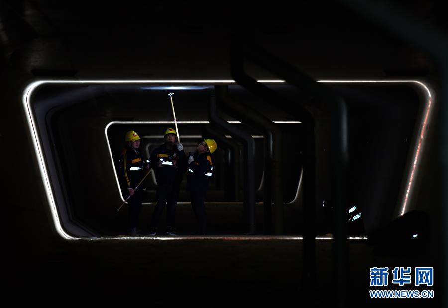 1月3日,中國(guó)鐵路濟(jì)南局臨沂工務(wù)段工程技術(shù)員在沂河特大橋箱梁內(nèi)檢查。新華社記者 朱崢攝