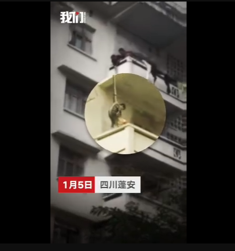 1月5日下午,四川南充市蓬安縣,一奶奶在百順街老百貨公司宿舍樓上,用一根繩子綁著孫子的腰,將其從五樓吊至三樓一窗戶遮雨臺上,只為救一只貓。此舉嚇得周圍鄰居紛紛呼喊:危險!網(wǎng)友:小孩子不懂事,老人是糊涂了嗎?到底誰是親的?