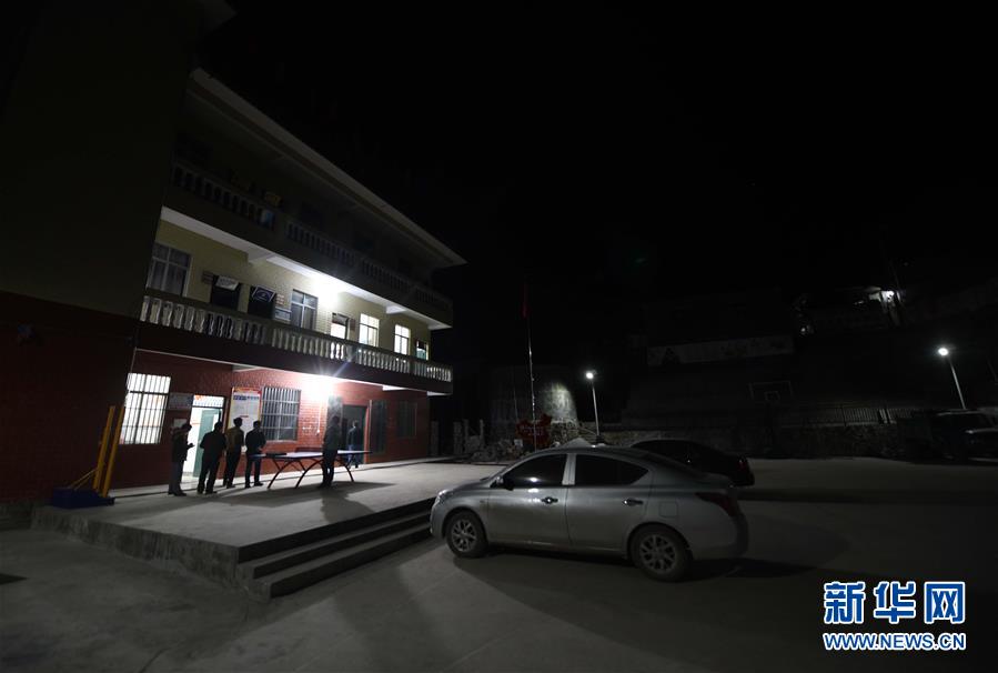 八好村駐村第一書記韋德王和同事在辦公樓外商量扶貧相關事宜(2019年12月16日攝)。新華社記者黃孝邦攝