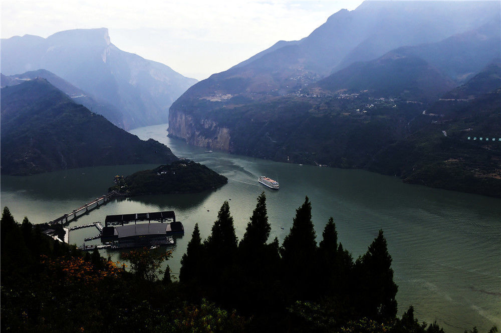 2019年11月3日,重慶,深秋時(shí)節(jié)晨曦初露中的三峽夔門和奉節(jié)白帝城,猶如一顆顆鑲嵌在群山里的江河明珠。