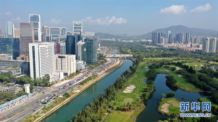 這是1月7日拍攝的深圳南山區(qū)大沙河兩岸景觀(無人機照片)。 新華社記者 梁旭 攝