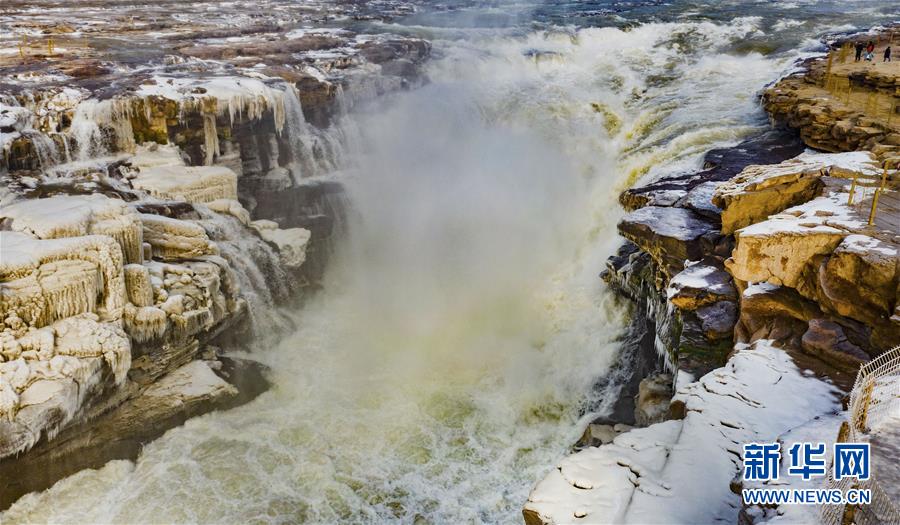 1月12日拍攝的黃河壺口瀑布主瀑(無人機照片)。新華社記者陶明攝