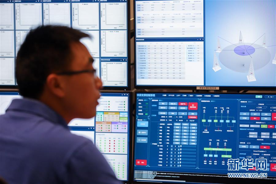 8月30日凌晨,工作人員在“中國天眼”總控室內(nèi)工作。新華社記者歐東衢攝