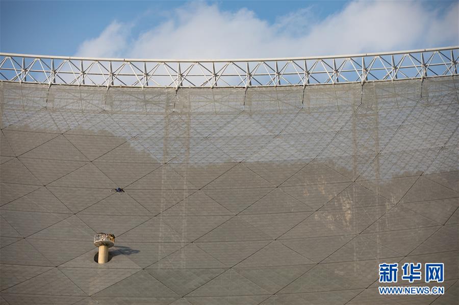 8月28日,工作人員在對FAST反射面板進(jìn)行檢修。新華社記者歐東衢攝