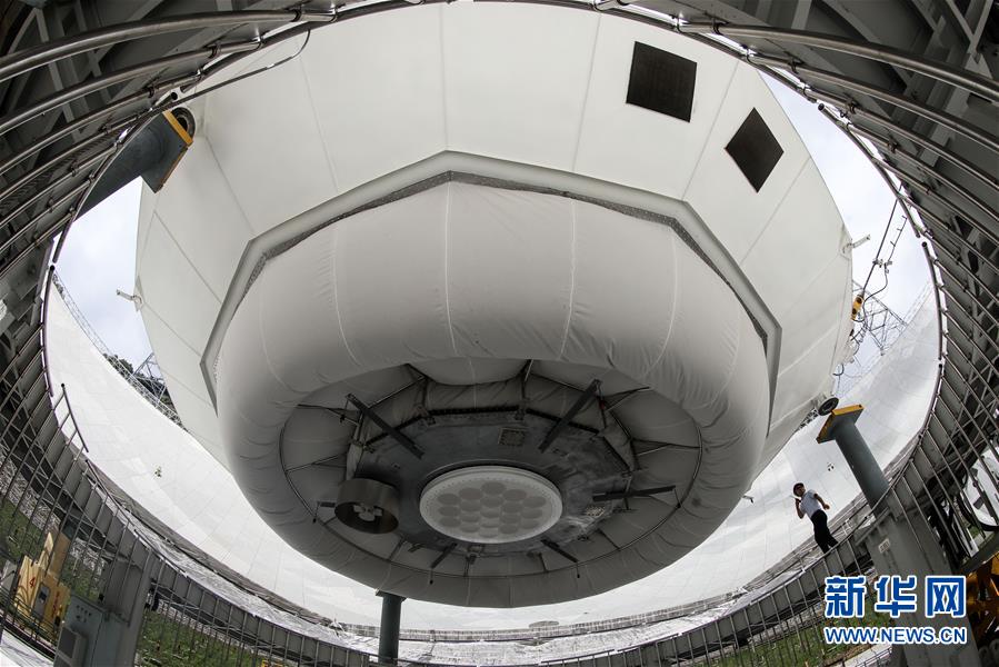 8月28日,工作人員在“中國天眼”內(nèi)進(jìn)行檢修。新華社記者歐東衢攝