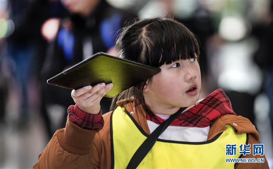 1月14日,一位小朋友在西安北站候車大廳與家人通話。路再遠、再艱辛,也擋不住回家的腳步。在西安北站的每一個角落,處處充滿溫情和歸鄉(xiāng)的盼望。連日來,西安北站日均發(fā)送旅客12.1萬人次,一列列春運的列車,載著中國人的鄉(xiāng)愁,駛向遠方。新華社記者陶明攝
