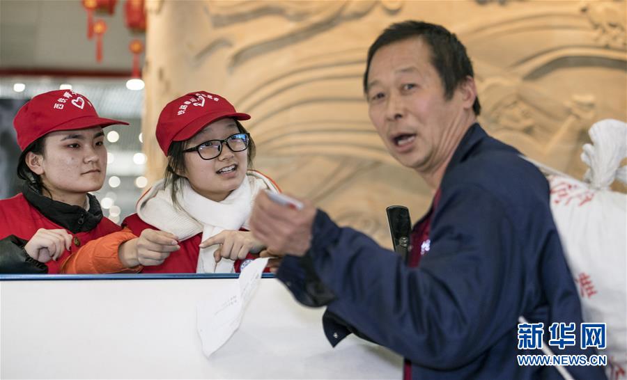 1月14日,西安北站客運員吉如(右一)在引導旅客。路再遠、再艱辛,也擋不住回家的腳步。在西安北站的每一個角落,處處充滿溫情和歸鄉(xiāng)的盼望。連日來,西安北站日均發(fā)送旅客12.1萬人次,一列列春運的列車,載著中國人的鄉(xiāng)愁,駛向遠方。新華社記者陶明攝