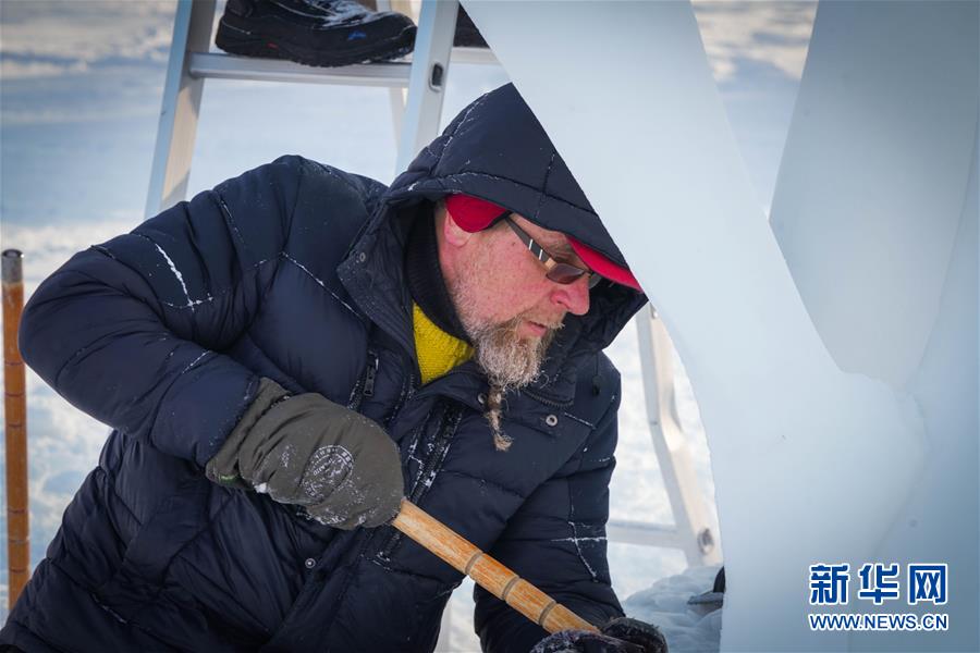 1月13日,參賽選手在哈爾濱太陽(yáng)島雪博會(huì)園區(qū)創(chuàng)作雪雕。新華社記者王松攝