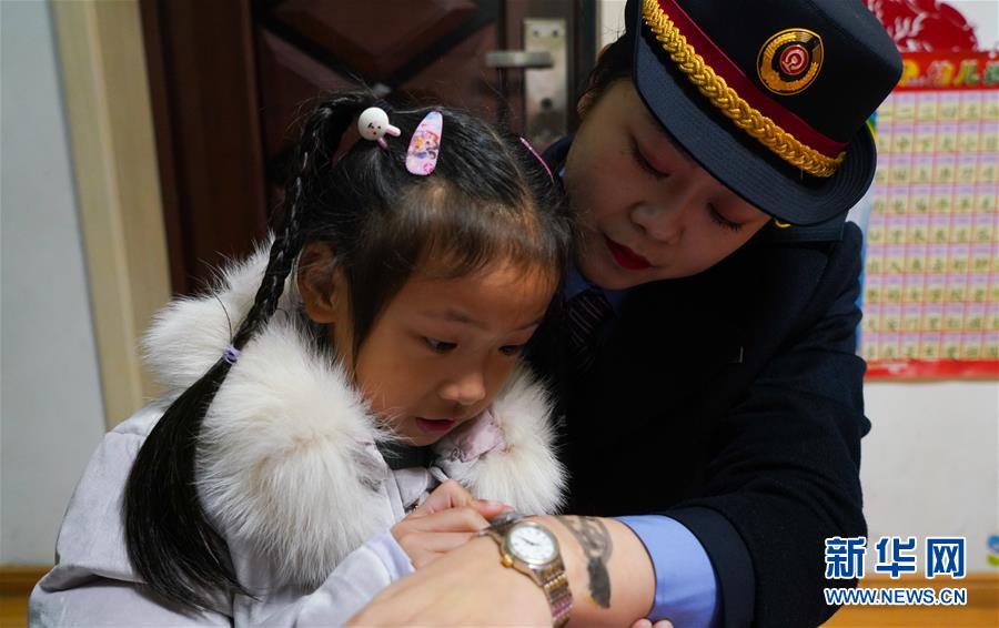 2020年1月3日晚,卞菁值乘從井岡山開往北京西的D734次列車,途經(jīng)南昌西站。思念媽媽的女兒朱梓芮在父親的陪同下,來到南昌西站站臺與卞菁團圓,一家三口在站臺度過了8分鐘的團聚時光。 在昏暗的站臺,朱梓芮用水筆將媽媽手上略有些模糊的“手表”重新描繪清晰。隨著鈴聲響起,車門將一家人隔開,列車遠去,一家人眼眶變得濕潤起來……