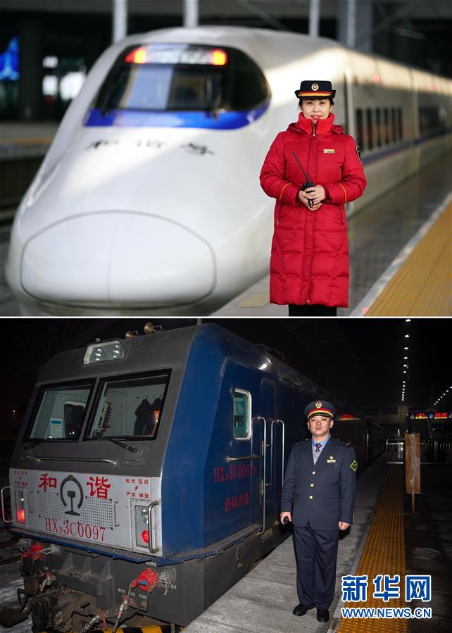 拼版照片上圖為太原客運段的列車長陳海燕在西安北站留影(新華社記者詹彥1月11日攝);下圖為太原客運段的列車長趙耀在太原站留影(新華社記者楊晨光1月11日攝)。新華社發(fā)