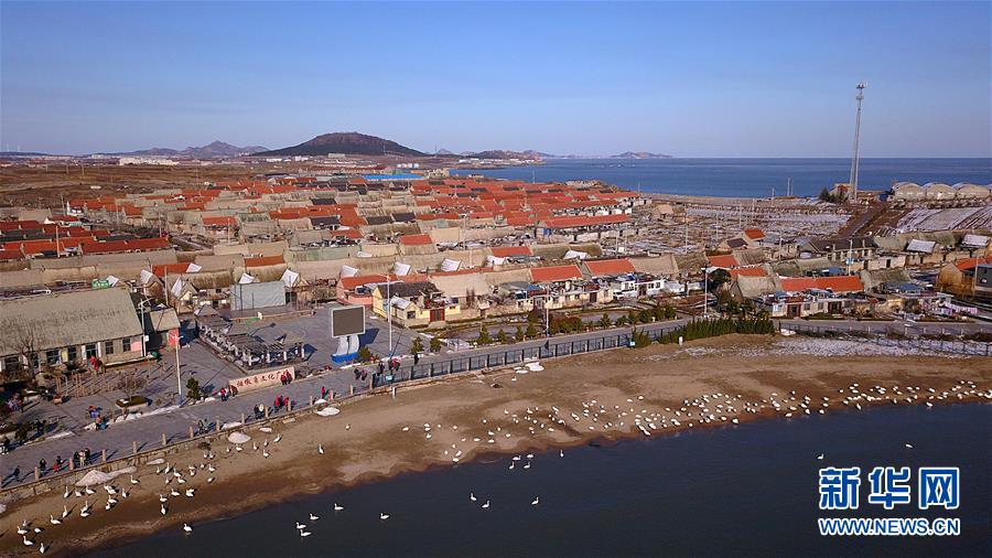 2020年的第一場(chǎng)雪,飄落在百年海草房上,海灣里游弋的大天鵝,引頸鳴唱。煙墩角,這個(gè)山東省榮成市海濱的小漁村,因冬雪和天鵝的到來(lái)而顯得更加熱鬧。