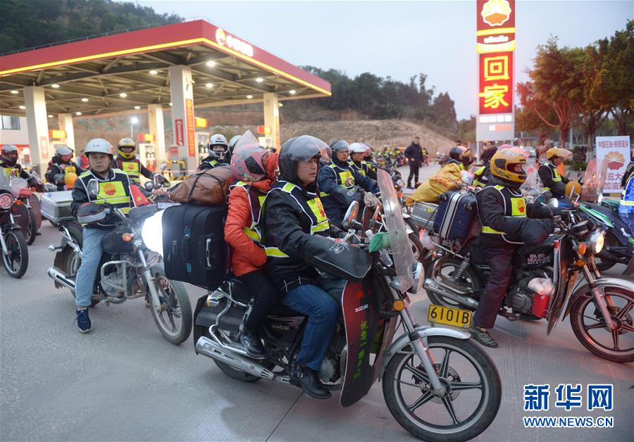 當日,首批198輛摩托車、268人從福建省泉州、廈門、漳州等地出發(fā),踏上回家之旅。為方便這支摩托大軍,從1月15日至23日,中石油啟動連續(xù)第9年的“溫暖回家路·鐵騎返鄉(xiāng)”公益行動,開放福建、江西兩地35座加油站,為返鄉(xiāng)鐵騎提供免費加油、交通反光背心、姜湯熱茶和地圖等一系列愛心幫助。