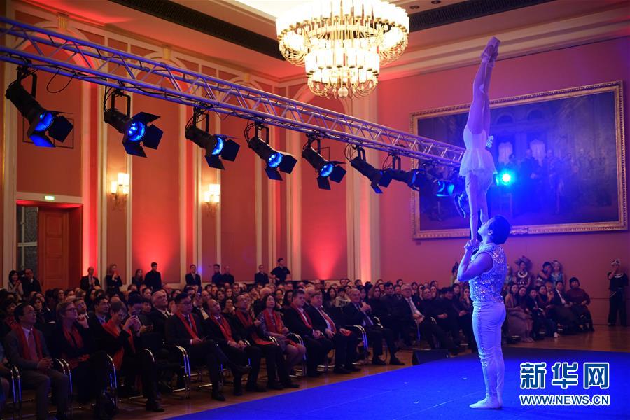 1月15日,在德國柏林,貴州省歌舞劇院藝術團的演員在晚會上表演雜技。 15日晚,2020年“歡樂春節(jié)”新春文藝晚會在德國柏林的紅色市政廳上演,中德兩國各界代表觀看演出,共慶中國農(nóng)歷新年。 新華社記者 王勍 攝