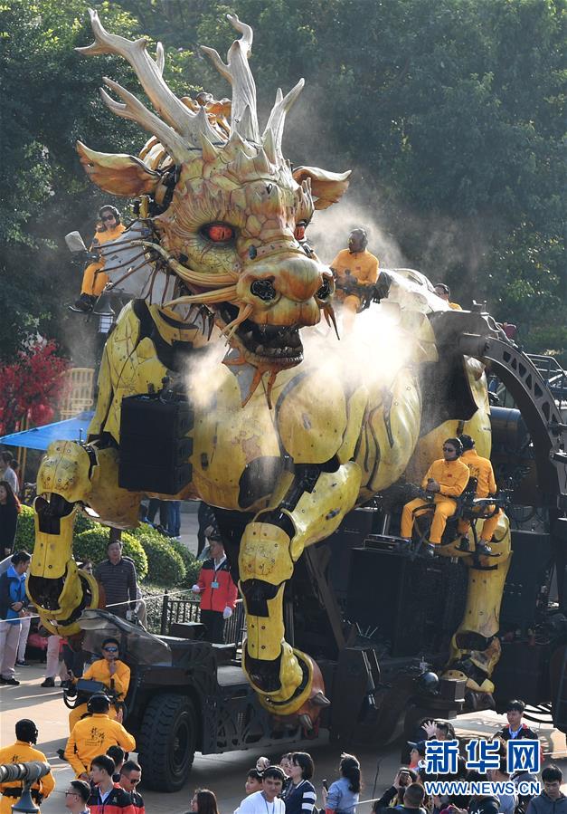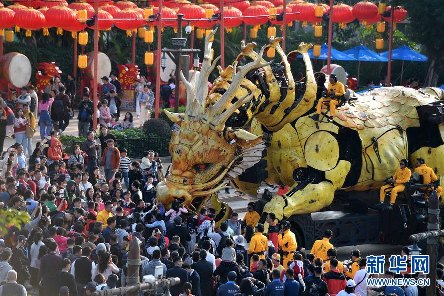 1月18日,大型機(jī)械裝置藝術(shù)品“龍馬精神”在珠海長隆海洋王國巡游展示。
