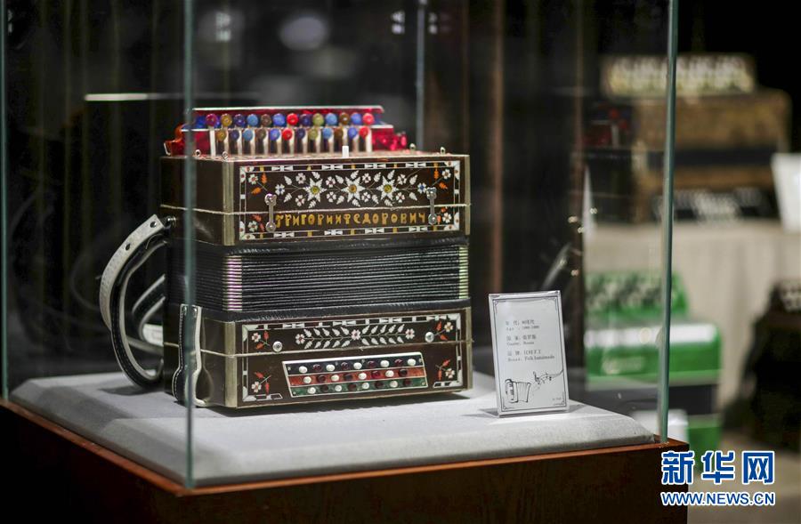 塔城市手風(fēng)琴博物館里展出的產(chǎn)自俄羅斯的手風(fēng)琴(1月21日攝)。新華社記者 趙戈 攝