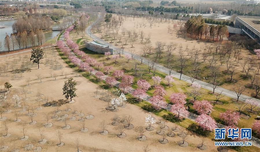 這是2月24日在上海松江辰山植物園內拍攝的櫻花小徑(無人機照片)。 新華社記者 方喆 攝
