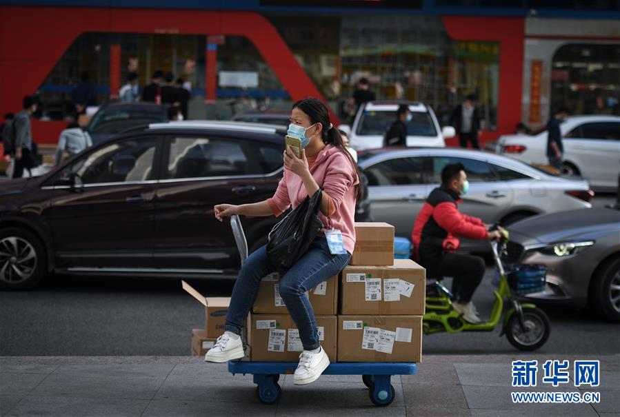 2月24日,在深圳華強北的步行街上,商戶、客戶和物流人員在室外忙碌。 新華社記者 毛思倩 攝