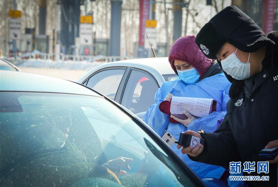 2月24日,工作人員在哈同高速公路哈爾濱收費(fèi)站為車(chē)輛人員登記。 新華社記者 王松 攝