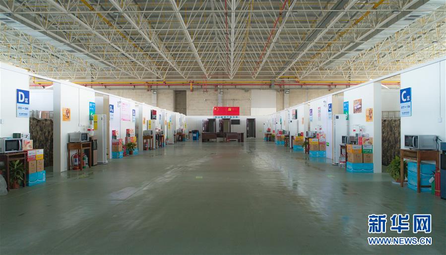 2月25日,在青山楠姆方艙醫(yī)院,工作人員在現(xiàn)場忙碌。 新華社記者 肖藝九 攝
