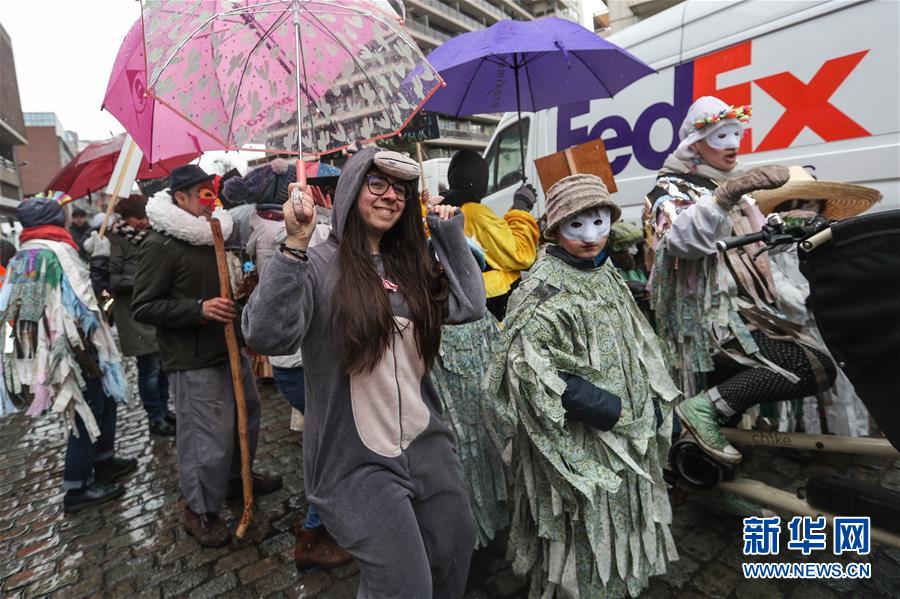 2月27日,人們在比利時(shí)布魯塞爾參加狂歡節(jié)活動。 新華社記者鄭煥松攝
