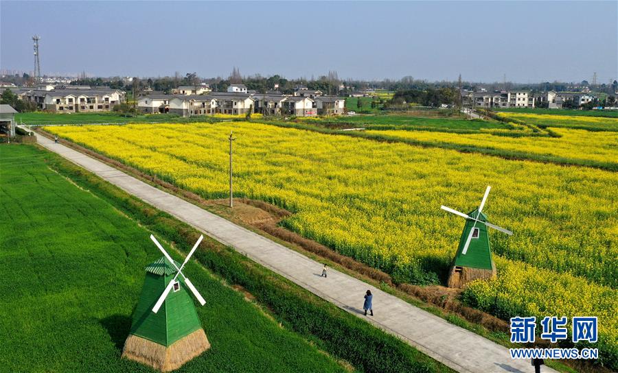 2月25日在四川省崇州市農(nóng)業(yè)產(chǎn)業(yè)功能區(qū)拍攝的油菜花田(無(wú)人機(jī)照片)。新華社記者王曦?cái)z