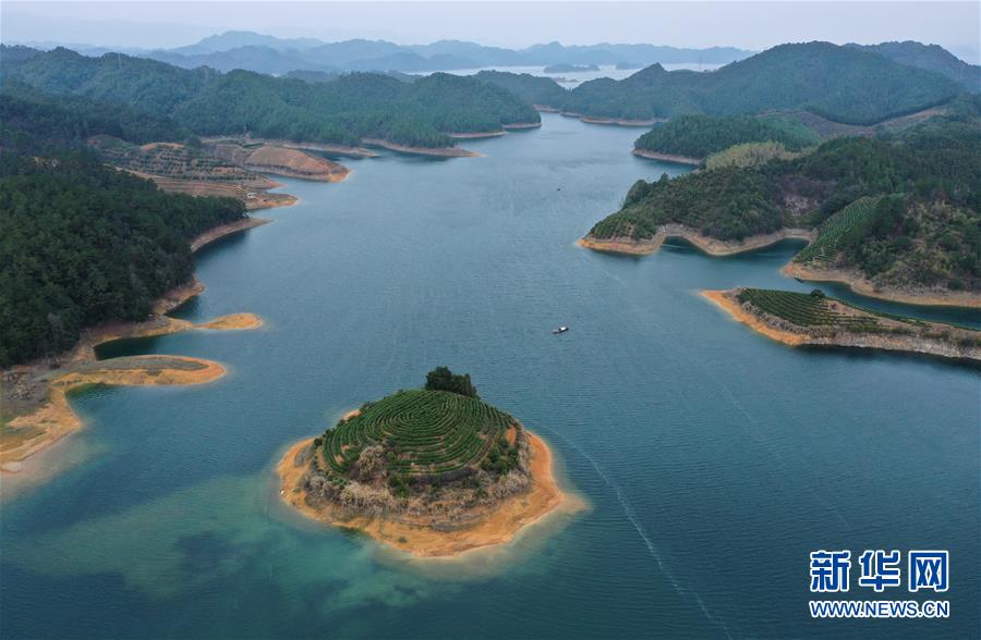這是淳安縣里商鄉(xiāng)村坑村一片茶園(3月2日攝,無人機照片)。當(dāng)日,浙江省淳安縣春茶全面開采,千島湖上星星點點的“島嶼茶園”浮在碧波之上,如夢似幻。新華社記者翁忻旸攝
