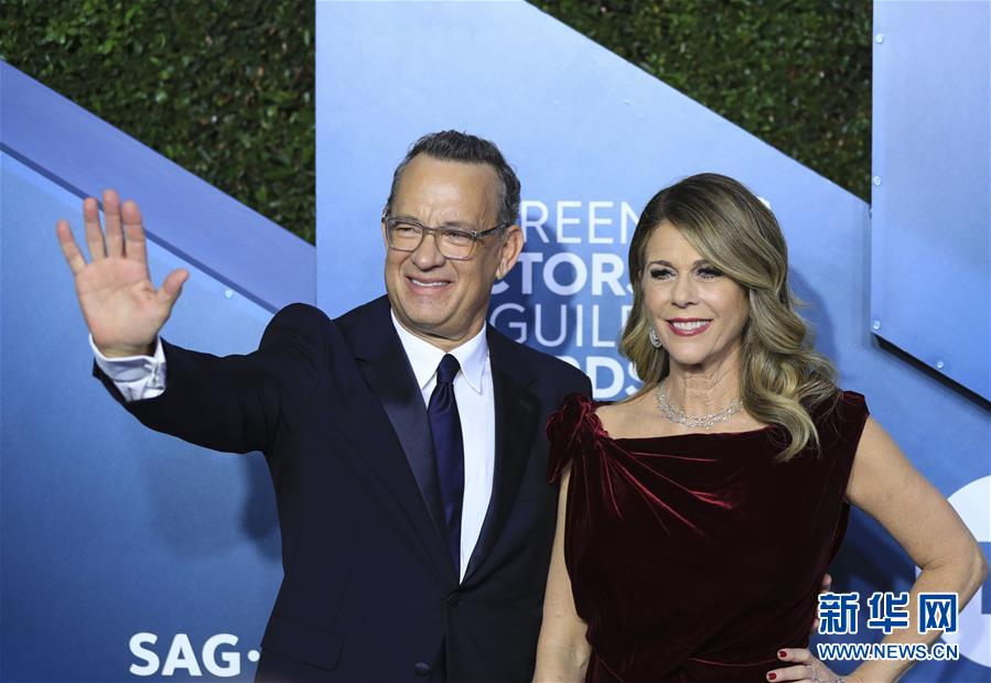 這是1月19日美國影星湯姆·漢克斯與妻子在美國洛杉磯亮相第26屆美國影視演員協(xié)會獎紅毯時的資料照片。