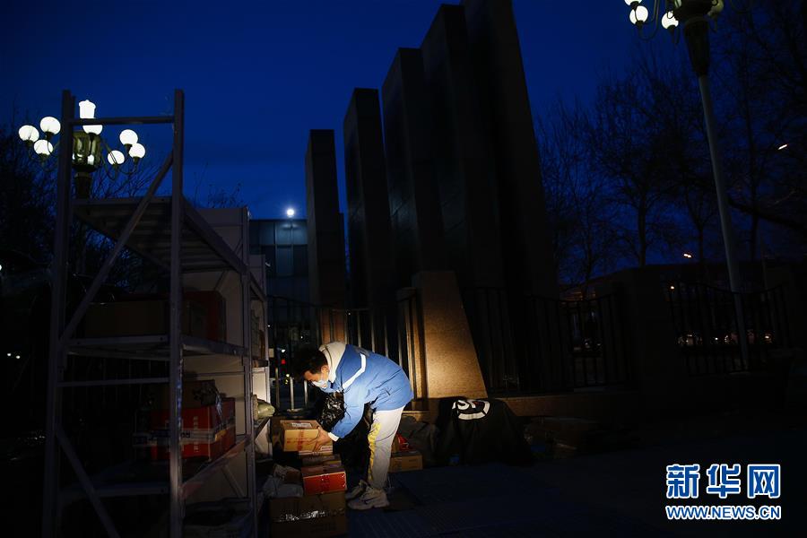 3月12日,李杰在中國(guó)青年政治學(xué)院快遞點(diǎn)查看仍未領(lǐng)取的包裹。新華社記者張玉薇攝