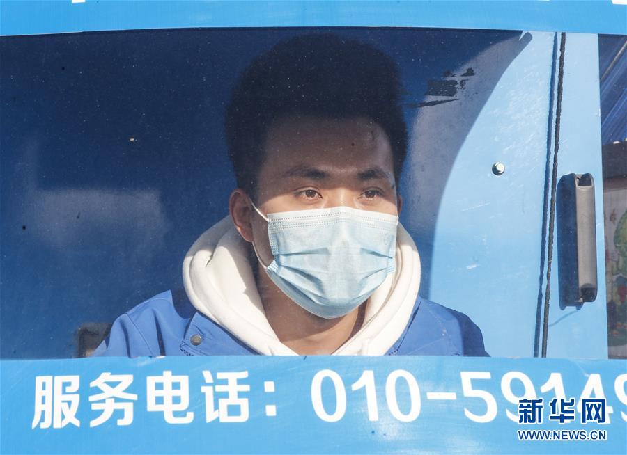 3月12日早晨,李杰在運送快遞的路上。新華社記者張玉薇攝