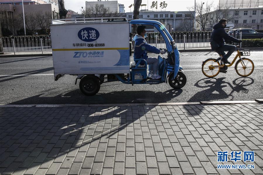 3月12日早晨,李杰在運送快遞的路上。新華社記者張玉薇攝
