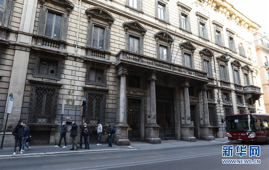 3月16日,在意大利首都羅馬,人們戴著口罩等公交車。新華社記者程婷婷攝