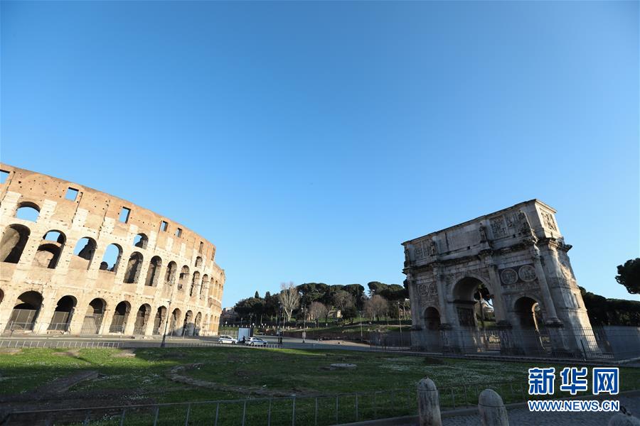 3月16日,在意大利首都羅馬,斗獸場(chǎng)因疫情關(guān)閉。新華社記者程婷婷攝