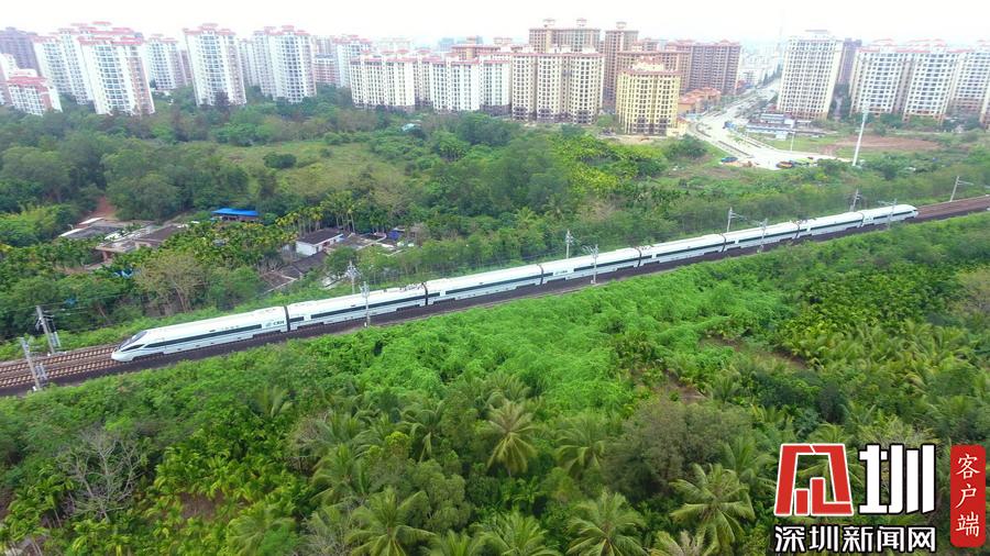 2020年3月17日,海南環(huán)島鐵路一列動(dòng)車從春光明媚的瓊海城區(qū)經(jīng)過。