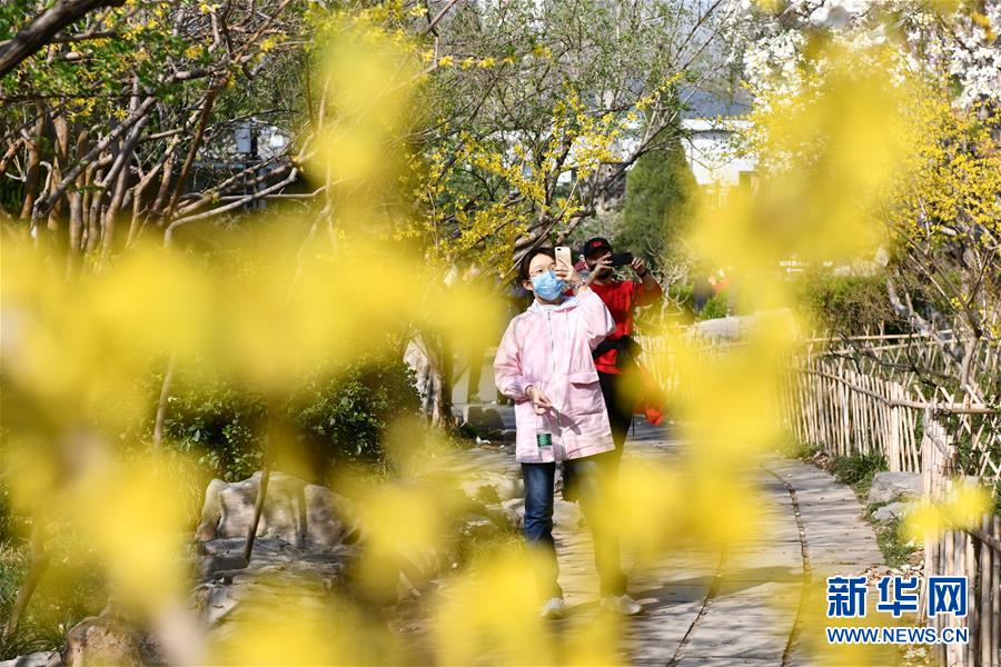 3月18日,游人在濟(jì)南百花公園拍照。新華社記者 朱崢 攝