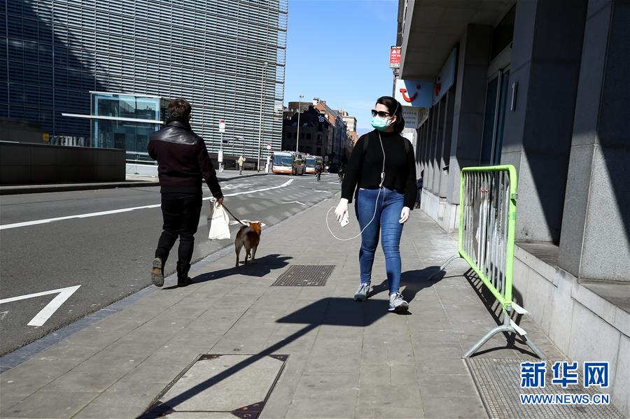 3月18日,在比利時布魯塞爾,佩戴口罩的行人走在馬路上。 截至17日,比利時累計確診新冠肺炎病例1243例,死亡10例,治愈出院15例。比利時首相維爾梅斯當(dāng)天宣布,從18日12時起全國范圍內(nèi)將實施“封城”,結(jié)束時間暫定為4月5日。根據(jù)全國安全委員會特別會議決定,除上下班,購買食品、藥品、就醫(yī)等特定情況外,全國民眾必須待在家中;有條件的企業(yè)必須進行遠程辦公。 新華社記者 張鋮 攝