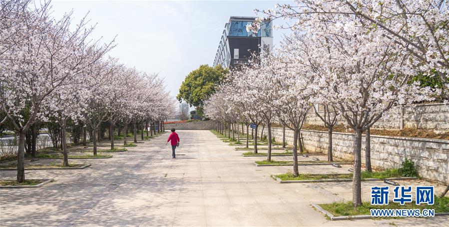 3月19日,在武漢市武昌區(qū)被網(wǎng)友稱為“武漢最美停車場”的湖北日?qǐng)?bào)停車場,一名工作人員從櫻花樹邊經(jīng)過。 新華社記者 才揚(yáng) 攝