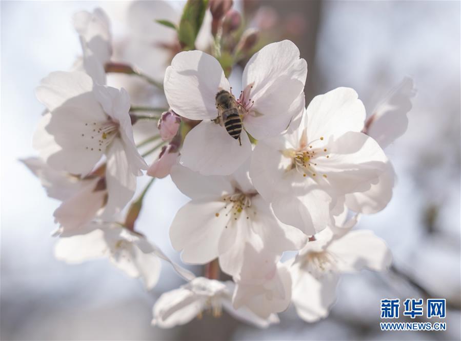 在武漢市武昌區(qū)被網(wǎng)友稱為“武漢最美停車場”的湖北日報停車場,櫻花開放(3月19日攝)。 新華社記者 才揚(yáng) 攝