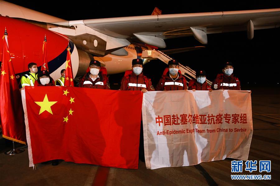 3月21日,在塞爾維亞首都貝爾格萊德,中國援助塞爾維亞抗疫醫(yī)療專家組成員合影。 中國援助塞爾維亞抗疫醫(yī)療專家組一行6人21日晚乘專機抵達塞首都貝爾格萊德,由中國政府捐贈的一批醫(yī)療物資同機抵達。 新華社記者 石中玉 攝